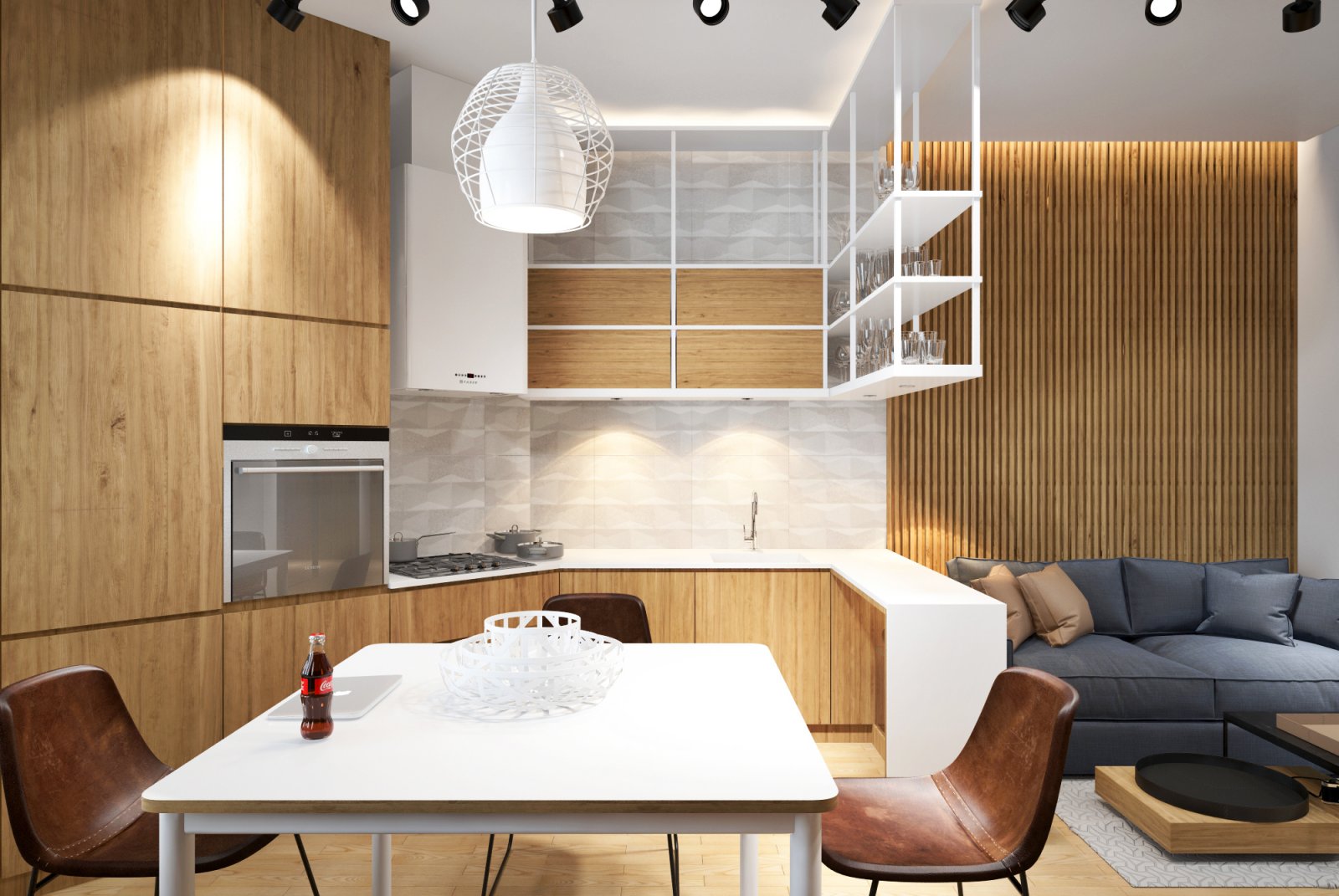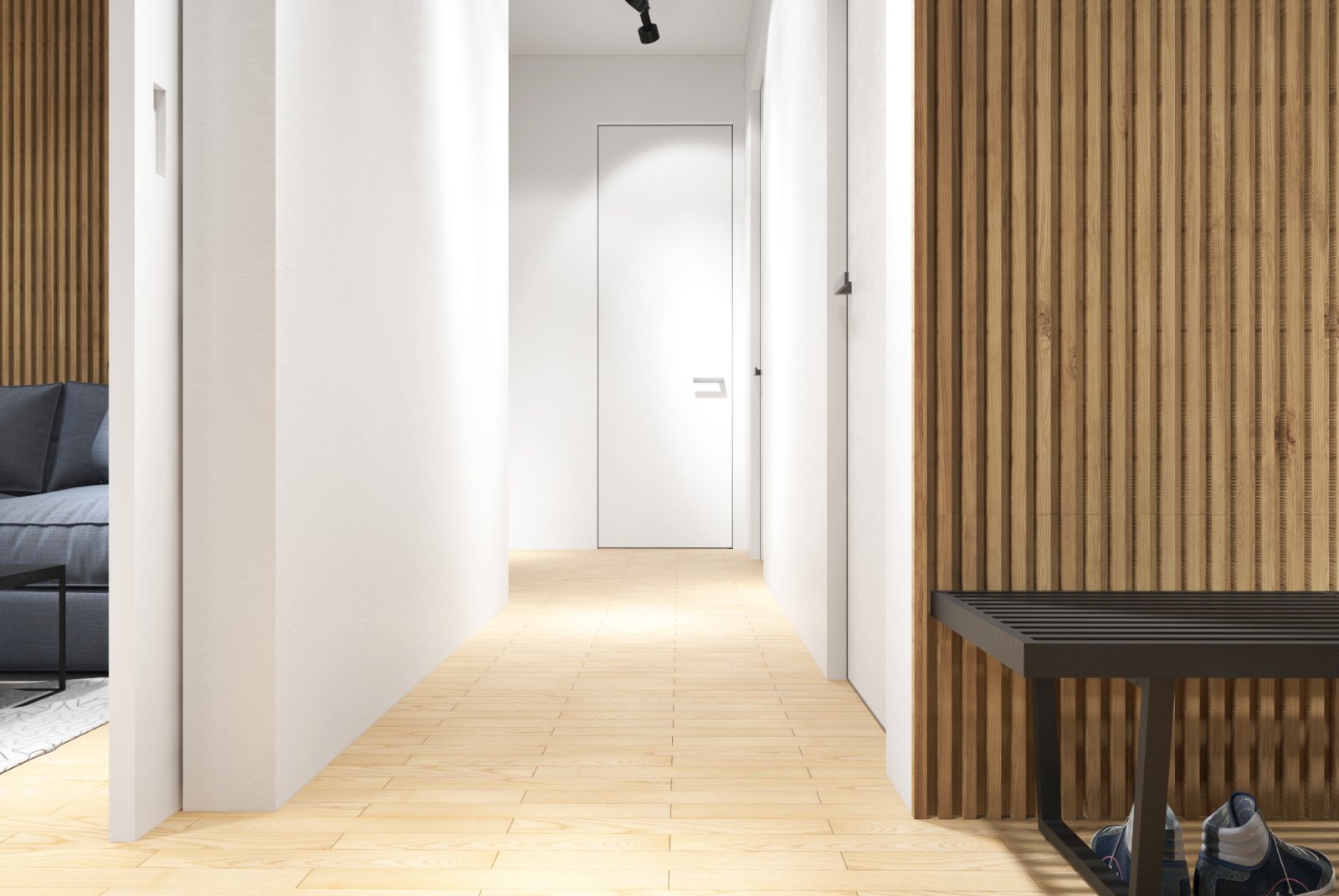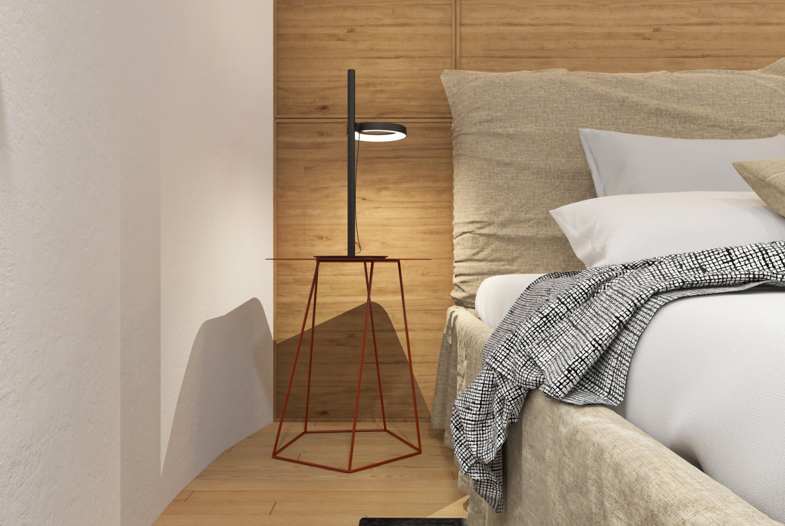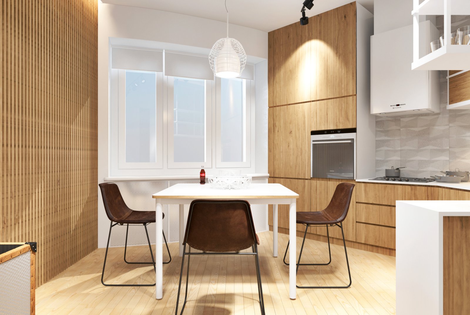 Когда я спросил у него с чем ассоциируется его квартира, он не задумываясь ответил - с берлогой. С этого и началась наша работа над проектом... :-) Главная задача состояла в том, чтобы создать место, где можно отлично провести время с друзьями. Основным местом для отдыха выбрали комнату студио, где можно делать коктейли, слушать музыку, танцевать и играть в настольные игры. Вторым местом был выбран кабинет, где можно посмотреть фильм на проекторе и уединиться от шумной компании на удобном диване. Конечно, когда друзья уходят, квартира приобретает вид «берлоги», где можно впасть в «спячку». За активным отдыхом следует пассивный. Белые стены, много дерева и возможность контролировать освещенность комнат, позволяет создать очень комфортную и расслабляющую атмосферу.